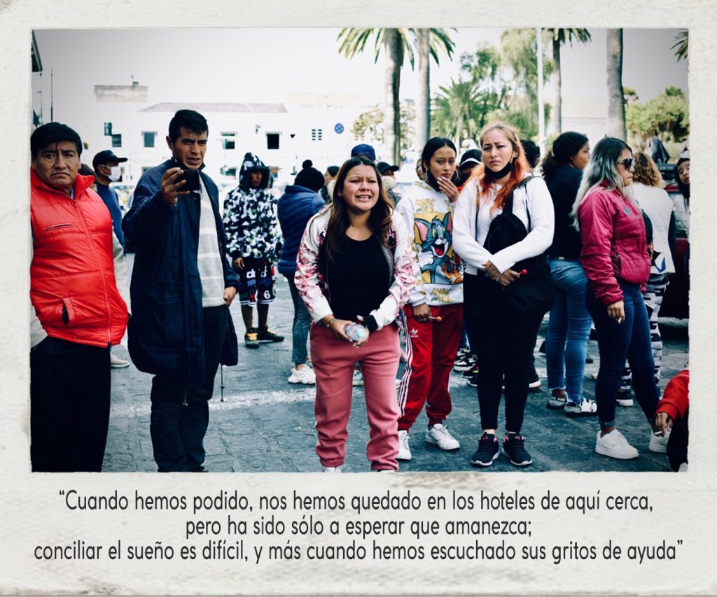 Nos esperan 2 horas de viaje para llegar al Centro de Rehabilitación Social Cotopaxi, en donde nos reuniremos con otras tantas familias que también se harán presentes para unir su voz en la exigencia de tener alguna noticia de sus familiares internos en la cárcel de Latacunga; 13 días a la fecha, han sido días duros y desesperantes, me cuentan ellas mientras avanzamos en el recorrido.