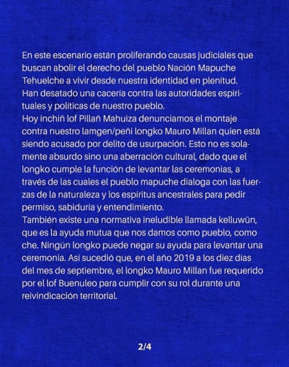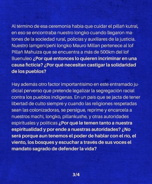 Desde la nación pueblo mapuche, se alza un relato que clama por justicia y exige la absolución de Mauro Millán. La persecución a la que se enfrenta no solo atenta contra su persona, sino que también es un ataque directo a la solidaridad y a los derechos fundamentales del pueblo mapuche.