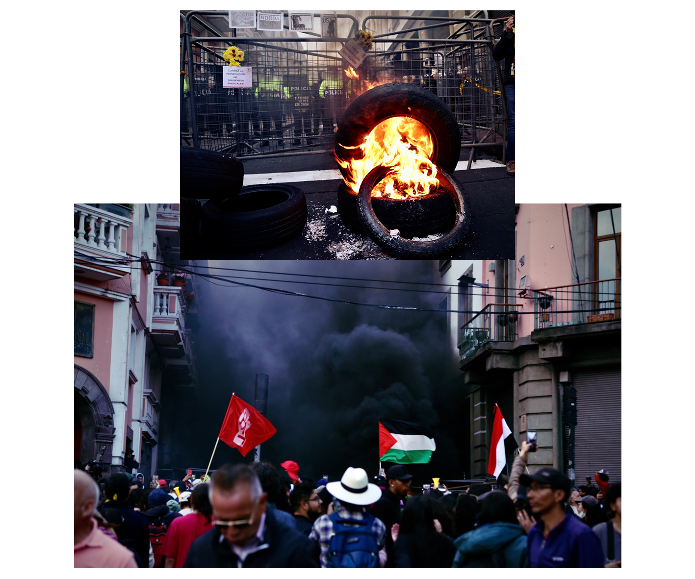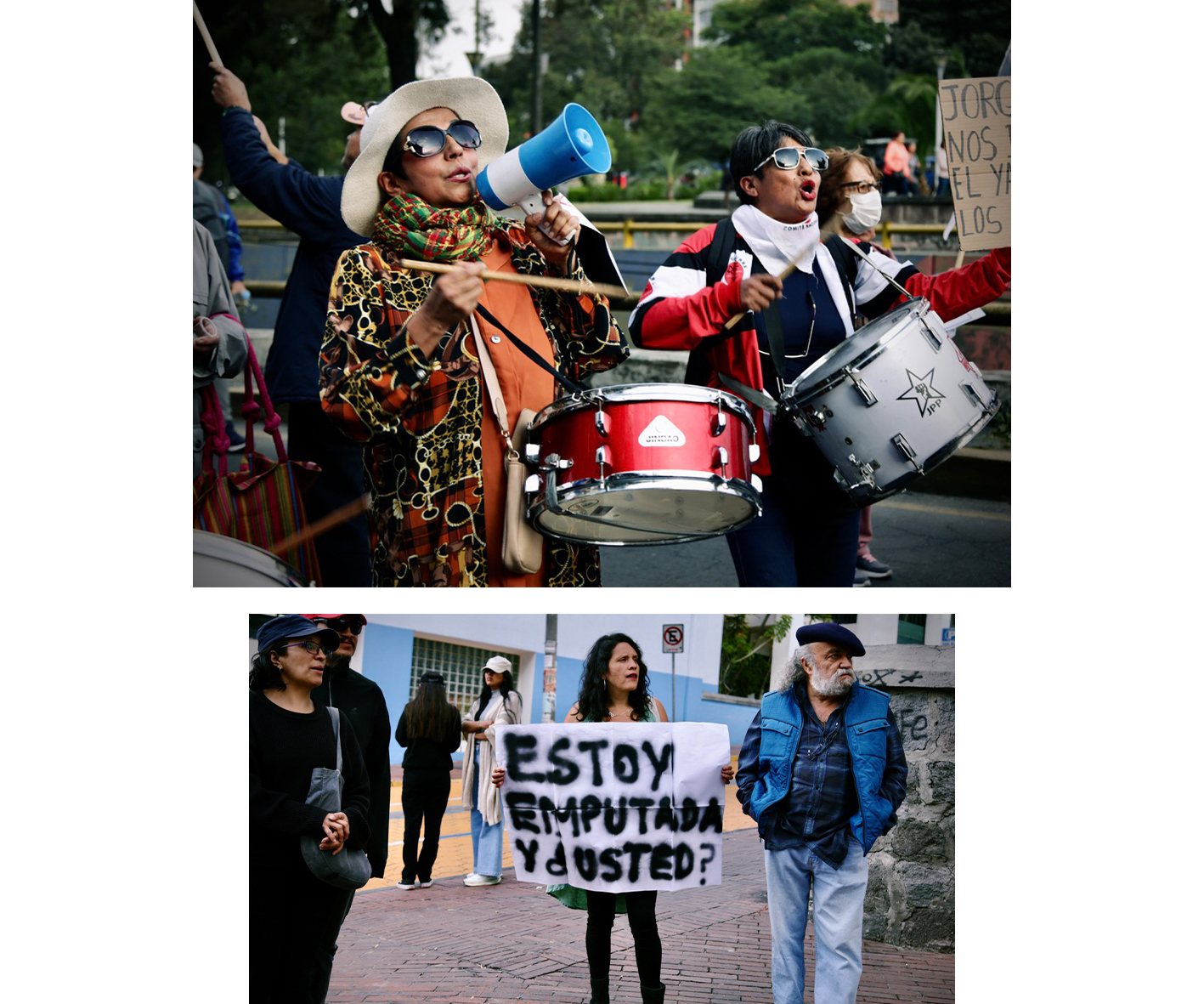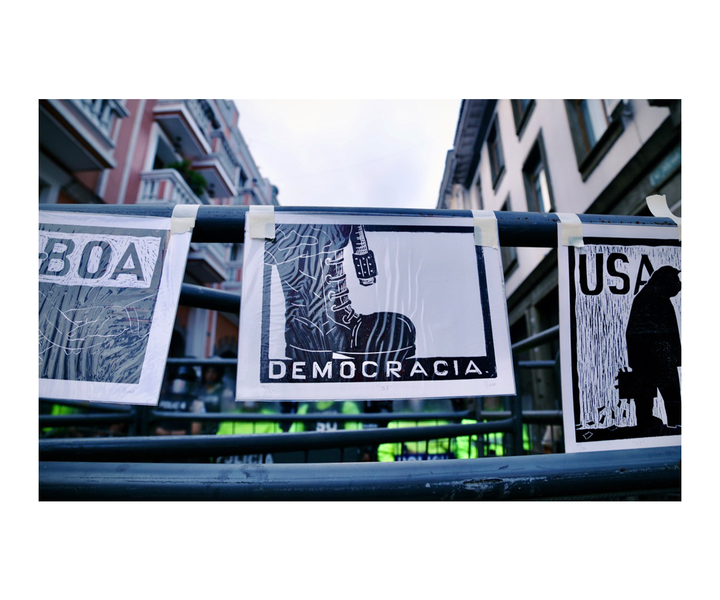 Con la memoria viva, el descontento se hizo sentir fuertemente a lo largo de la extensa marcha que ocupó varias cuadras hasta la plaza de Santo Domingo donde, con nuevas municiones, las fuerzas de represión dispersaron a la gente arremetiendo contra manifestantes y llevando a cabo detenciones violentas y arbitrarias.