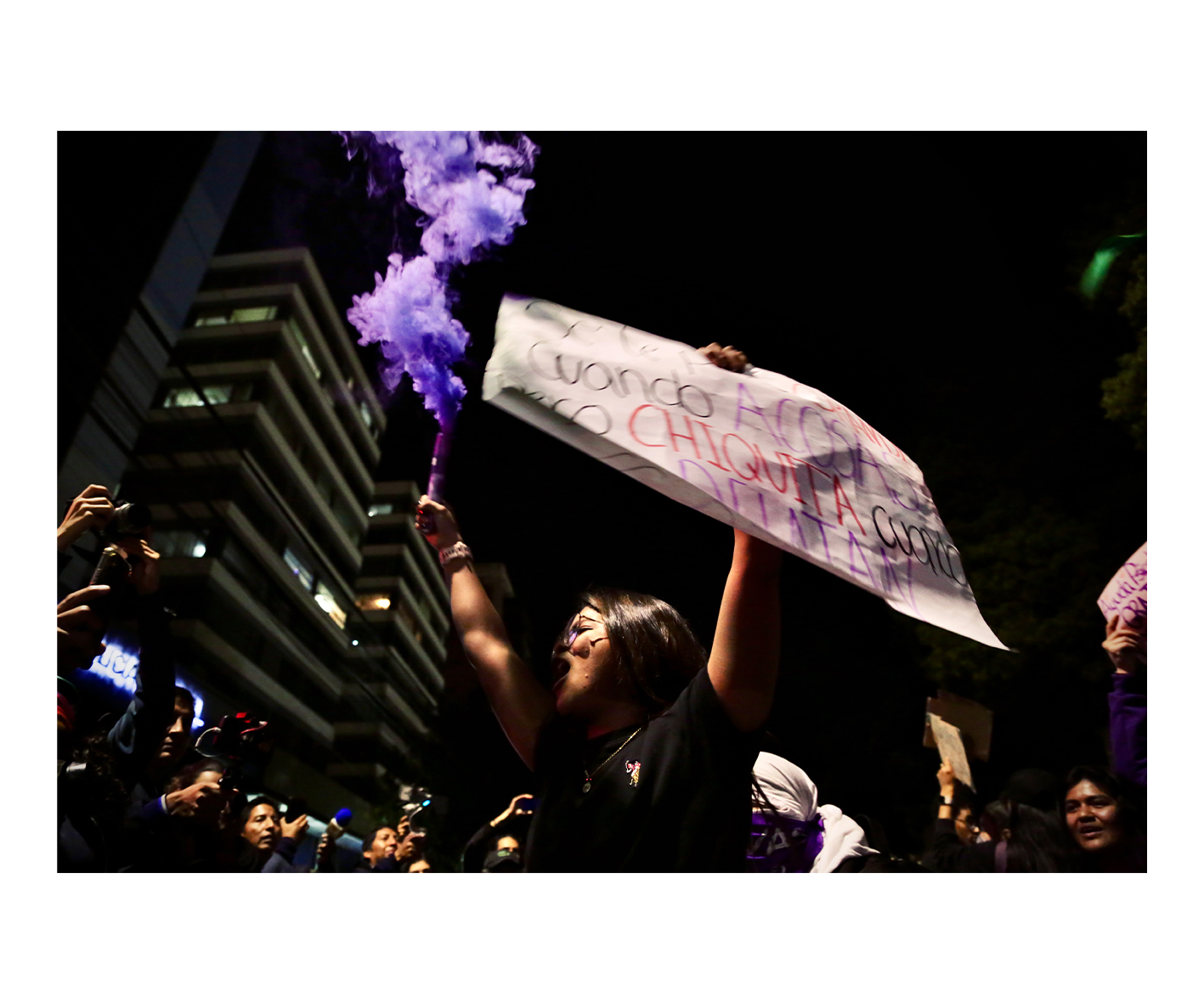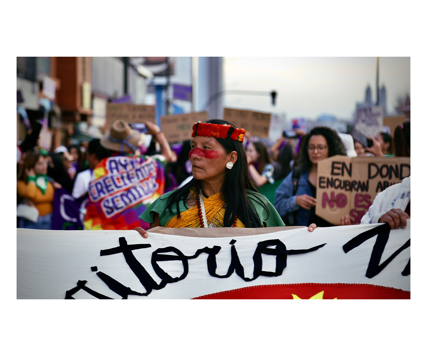 Los nombres de María Belén Bernal, Aidita Ati, y muchas otras también resonaron fuertemente: “La policía no te cuida, oprime y negocia con tu vida”.