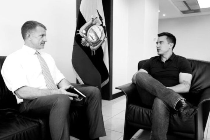 Para concretar dicha idea, el presidente ecuatoriano Daniel Noboa sostuvo una reunión de trabajo con el representante de la empresa de seguridad privada estadounidense BlackWater. Erick Prince, cabeza visible de la empresa ya mencionada, es conocido a nivel internacional por liderar un grupo de mercenarios.