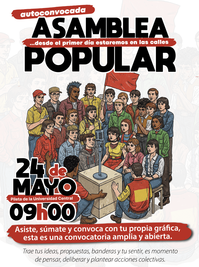 Este sábado 24 de mayo, mientras Daniel Noboa se instala en un nuevo período presidencial, nosotrxs, jóvenes y viejos, hombres, mujeres y diversidades sexogenéricas, personas organizadas e individualidades, trabajadores, estudiantes y desempleados, nos autoconvocamos.