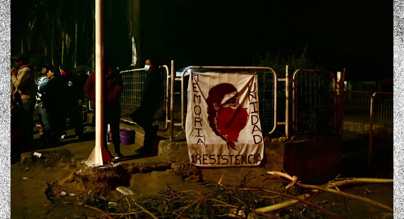 Agua en botellones, eucaliptos en ramas grandes, mascarillas, latas de escudos, guantes, rutas. Todo está listo para defenderse sin saber si se está preparado del todo, porque se sabe de sobra que nada detendrá las balas si deciden disparar, como aquella mañana en la que caía muert* el comunero Efraín Fuerez por los disparos propiciados en su espalda por militares.